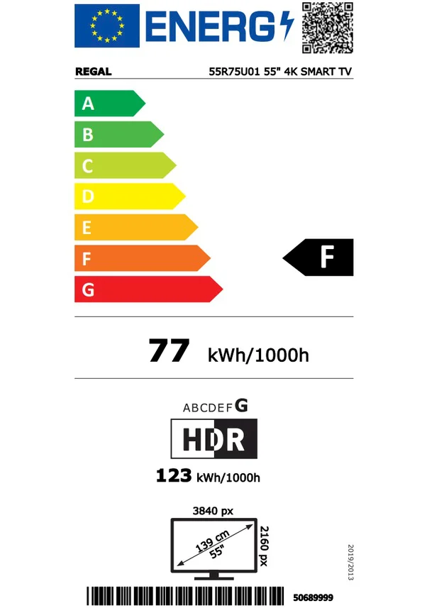 Regal 55R75U01 4K Ultra HD 55" 140 Screen Smart LED TV with Satellite Receiver
