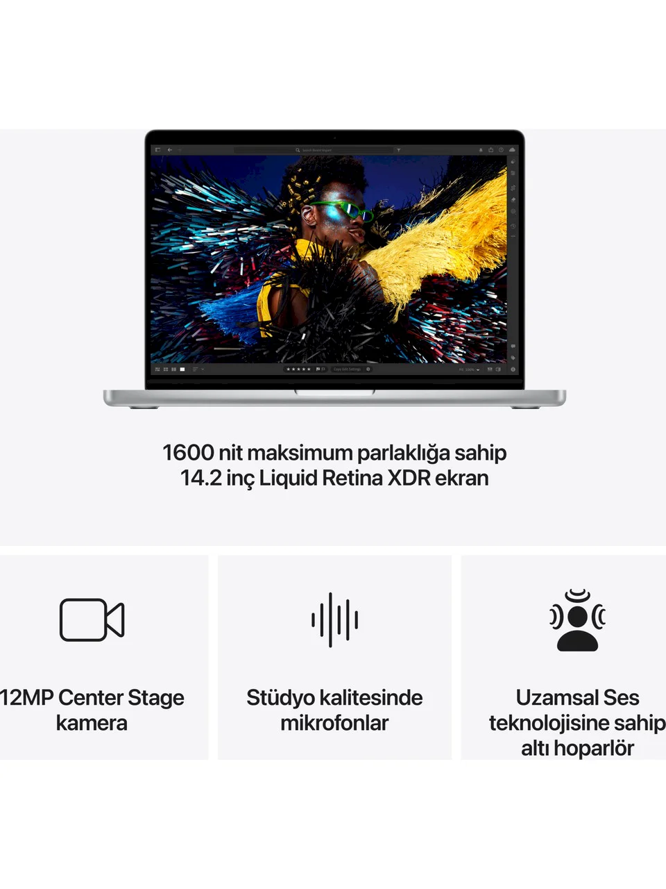 Ürün özellikleriİşlemci TipiApple M4İşlemciApple M4Ram TipiBelirtilmemişDokunmatik EkranYokEkran Boyutu14 inçİşlemci NesliApple M4Ekran KartıOnboardSSD Kapasitesi512 GBWebcamVarEkran Panel TipiLiquid Retina XDRCihaz Ağırlığı2 kg ve AltıeMMC KapasitesiYokParmak İzi OkuyucuYokİşletim SistemimacOSHarddisk KapasitesiYokMaksimum İşlemci HızıYokHDMIVarİşlemci CacheBelirtilmemişEkran Kartı TipiDahili Ekran KartıÜrün ModeliN