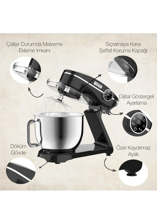 Schafer NeoCast Döküm Stand MikserÜrün Özellikleri;- 1800 W Güç- 10 Kademeli Hız Kontrolü- 6L Kapasiteli Paslanmaz Çelik Karıştırma Haznesi- Sıçramaya Karşı Şeffaf Koruma Kapağı- 3 Fonksiyonlu Aparat Seçeneği- Alt Koruma Kapağı- Özel Kaymaz Ayaklar- Döküm Gövde- Dijital Göstergeli Ayarlama- Tek Dokunuşta Hız Arttırma- Ürün Çalışır Durumda Malzeme Ekleme İmkanı- Ürünün Çalışma Süresini Gösteren Zaman Saati